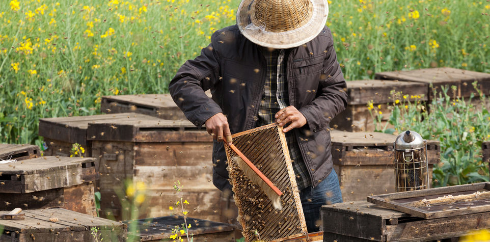 Provide a struggling farmer in Pakistan with a hive, bees, equipment, and training to help them start a sustainable honey business and support their family.